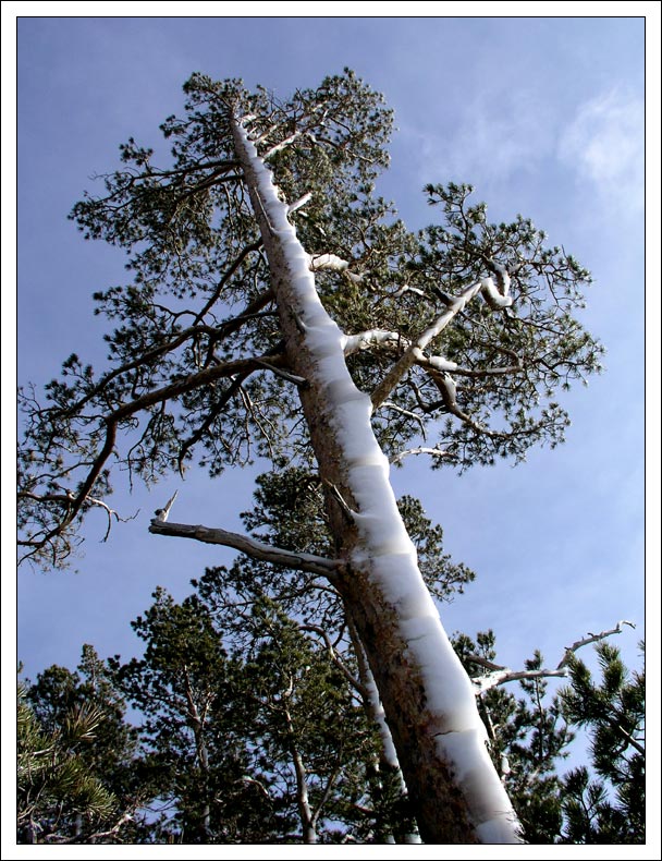 Так равномерно, по всему стволу, подтаявший снег. Очень красиво. |
