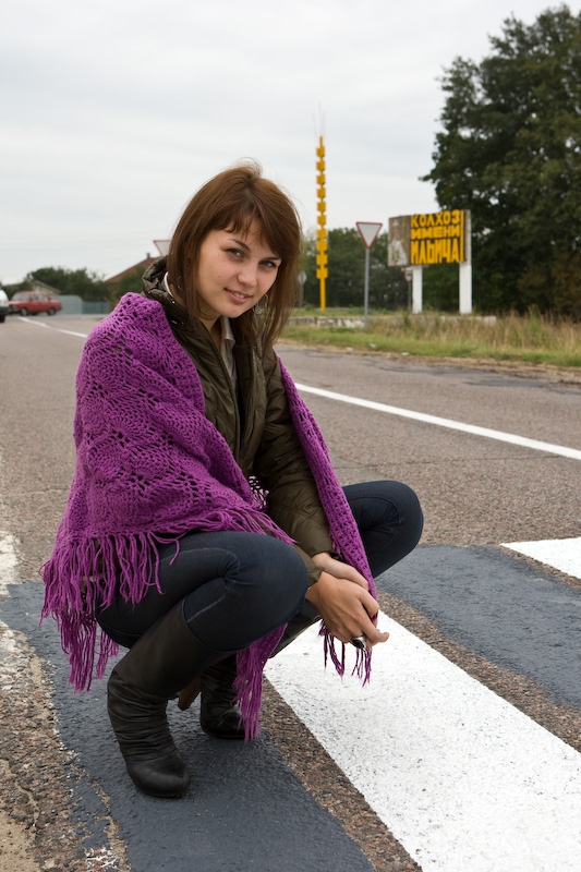 платок на голову и лопату в руки )) только каблуки выдают ее |